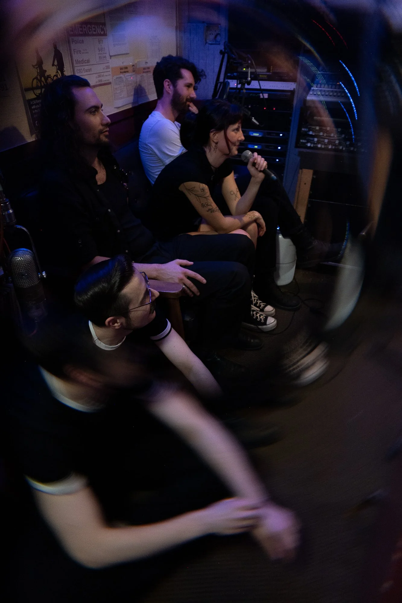 It was a dark and stormy night. Four strangers walked into Duffy’s Tavern. Christian “The Crandall” Crandall, Joe “Stache” Stone, Jordan “The Hair” Wiley, and Lys Lourdes. Unbeknownst to them, fate was working her magic. Joe ordered a shot of Fernet Branca— the world’s worst liquor. Whether by strange coincidence or pure luck, the others were ordering the same. They all knew immediately that they were kindred spirits, but before any of them could acknowledge it, the bartender lifted the bottle up to her eyeline to inspect it, and four unfortunate words escaped the her lips: “Only one shot left.” Each of our four heroes shot looks like daggers at each other. It was on. A brawl broke out. This type of thing was not uncommon for the tavern, and, frankly, all of the fighters were quite scrawny and fought rather awkwardly, so nobody batted an eye. The bartender threw the bottle into the mix, spilling the bitter, dark liquid onto the sticky bar floor. With nothing left to fight for, all they could do was shake hands. Before they parted ways, Joe noticed Lys’ shirt that read in jagged letters: My Chemical Romance. “Wait, you know about music?” “Yeah, I know about music. Do you wanna start a band?” And they all lived happily ever after.