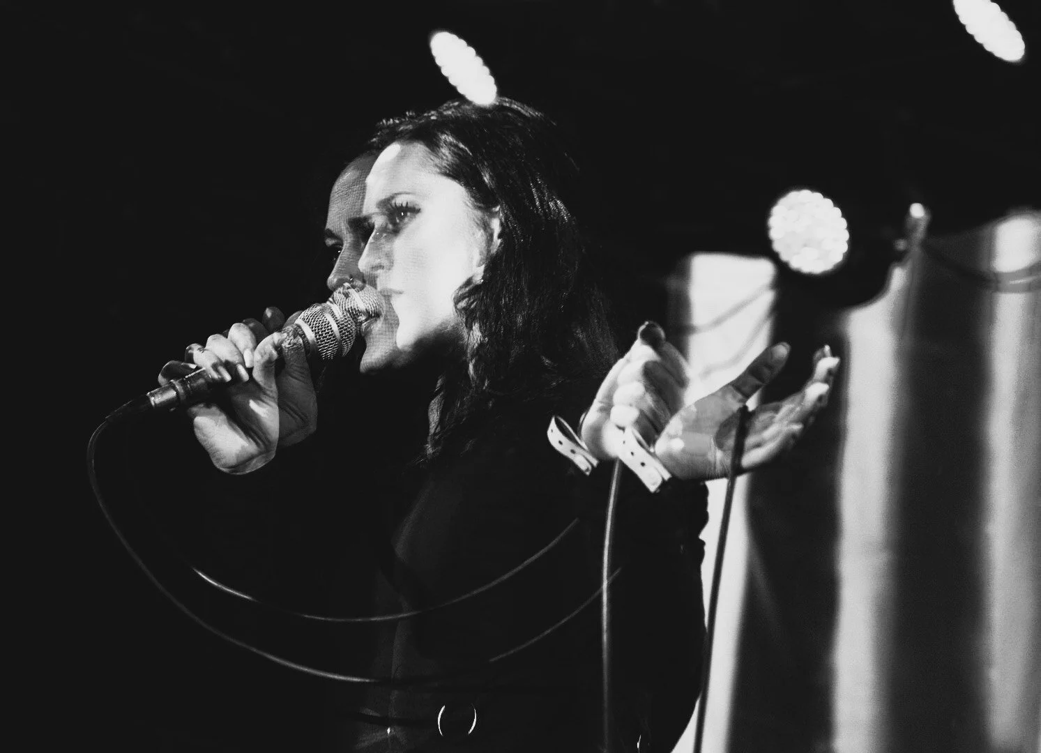 Mother Tongues came up next and piqued my interest when their lead singer began a ritual of rubbing some unknown liquid from a small vial onto the backs of the whole band’s necks, then that of the woman beside me in the front row. I guess he could taste my intrigue because he smoothly turned to me and softly asked me if I wanted some. I asked him what exactly it was, to which he cooly whispered in my ear, “A magic potion.” I looked him dead in the eyes, shrugged and said, “fuck it, why not,” bowed my head, and felt him rub his palm on my neck. The singer did the same to Alex, standing next to me, and then began to perform. Whatever it was, it burned in the best of ways, and made me feel energized and connected to the band within a minute and didn’t fully wear off until I got home. Their set was great, I loved their energy, and their songs were engaging front to back with great dynamics to top it all off.
